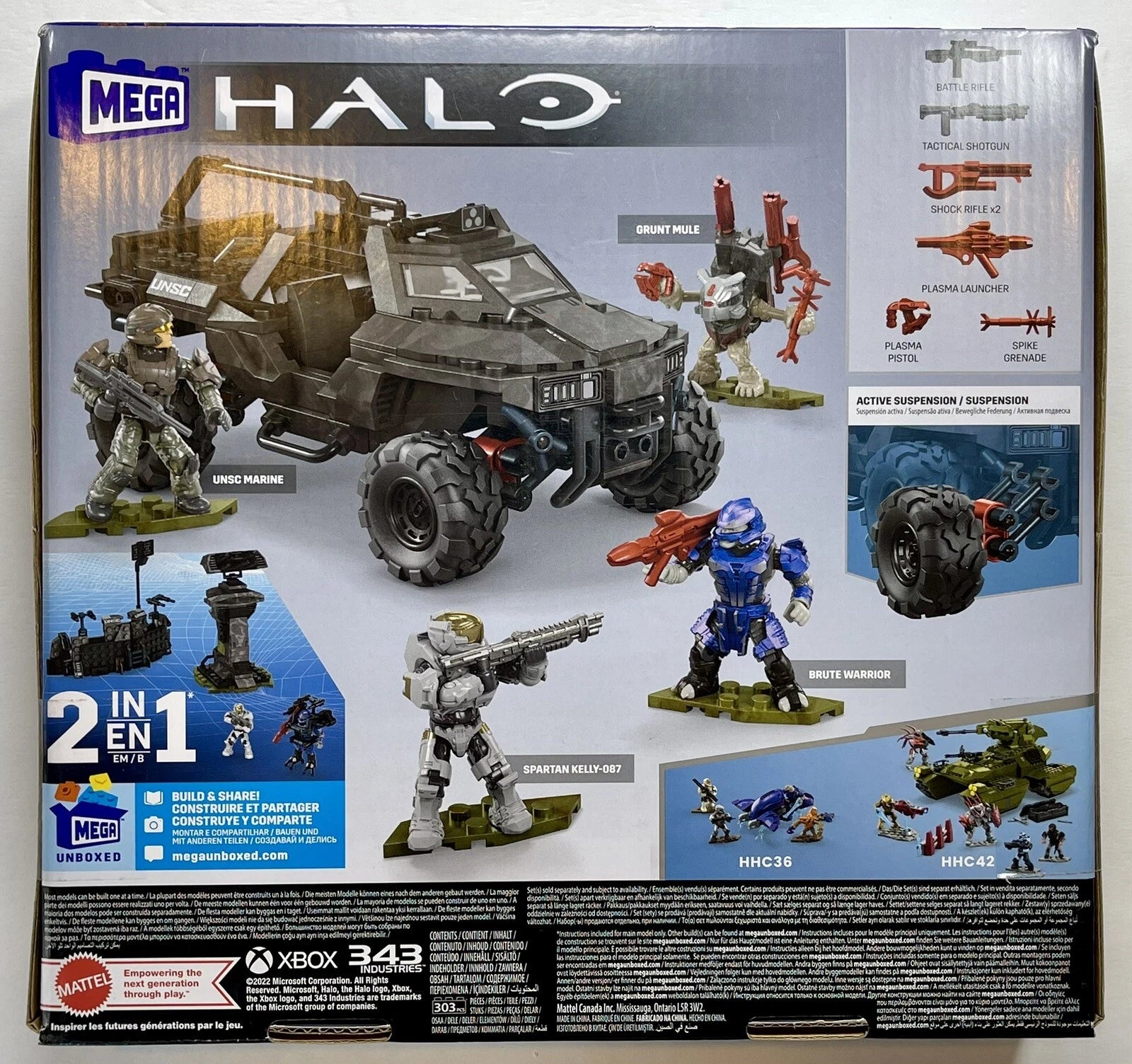 - 2-in-1 building toy: Choose to build the Razorback or a UNSC-themed defense outpost with fortified wall, raised missile turret and exo-suit